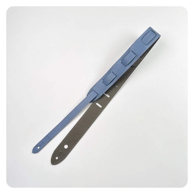 本革ウクレレストラップ[しぼグレイッシュブルー×しぼグレー]