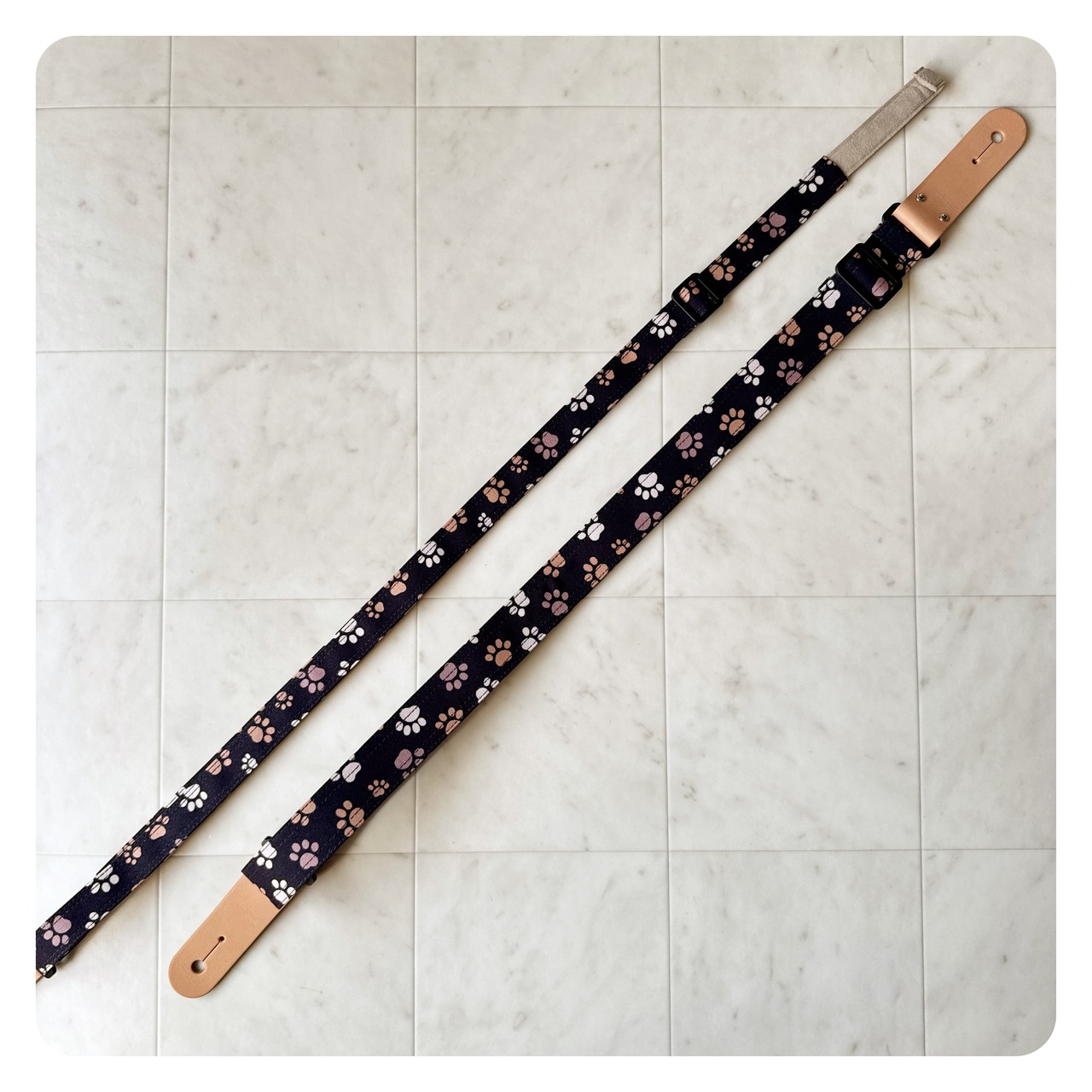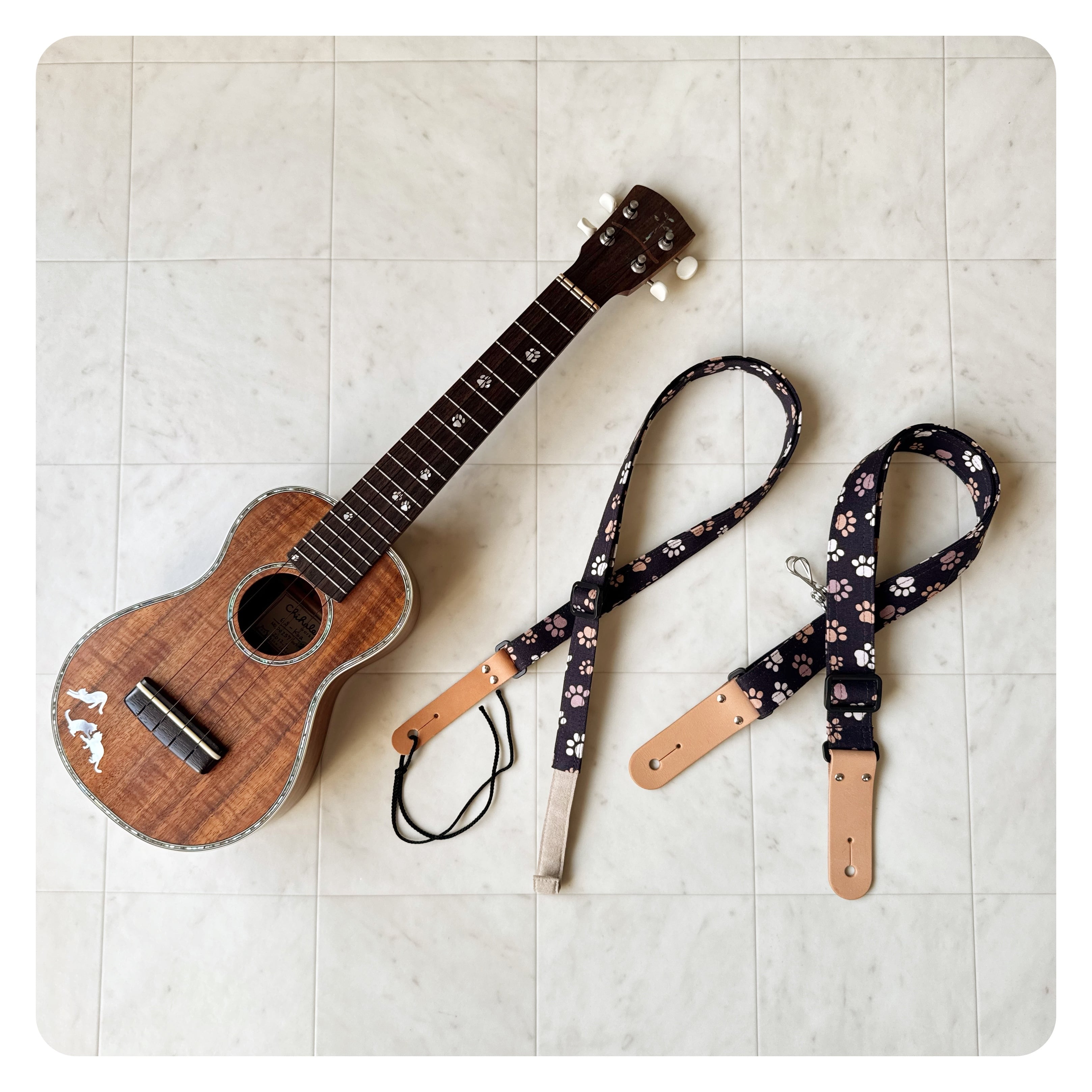 ウクレレストラップ[肉球ブラウン] 【首の凝らないフック式・アジャスター付/布製ピン式】
