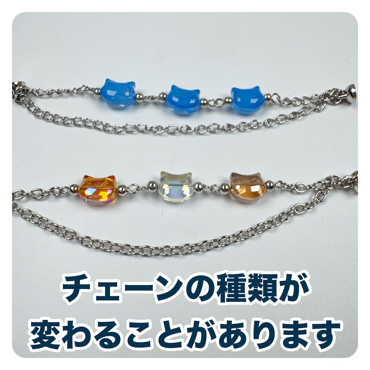ガラスビーズの猫が5連、カラフルに組み合わせています。