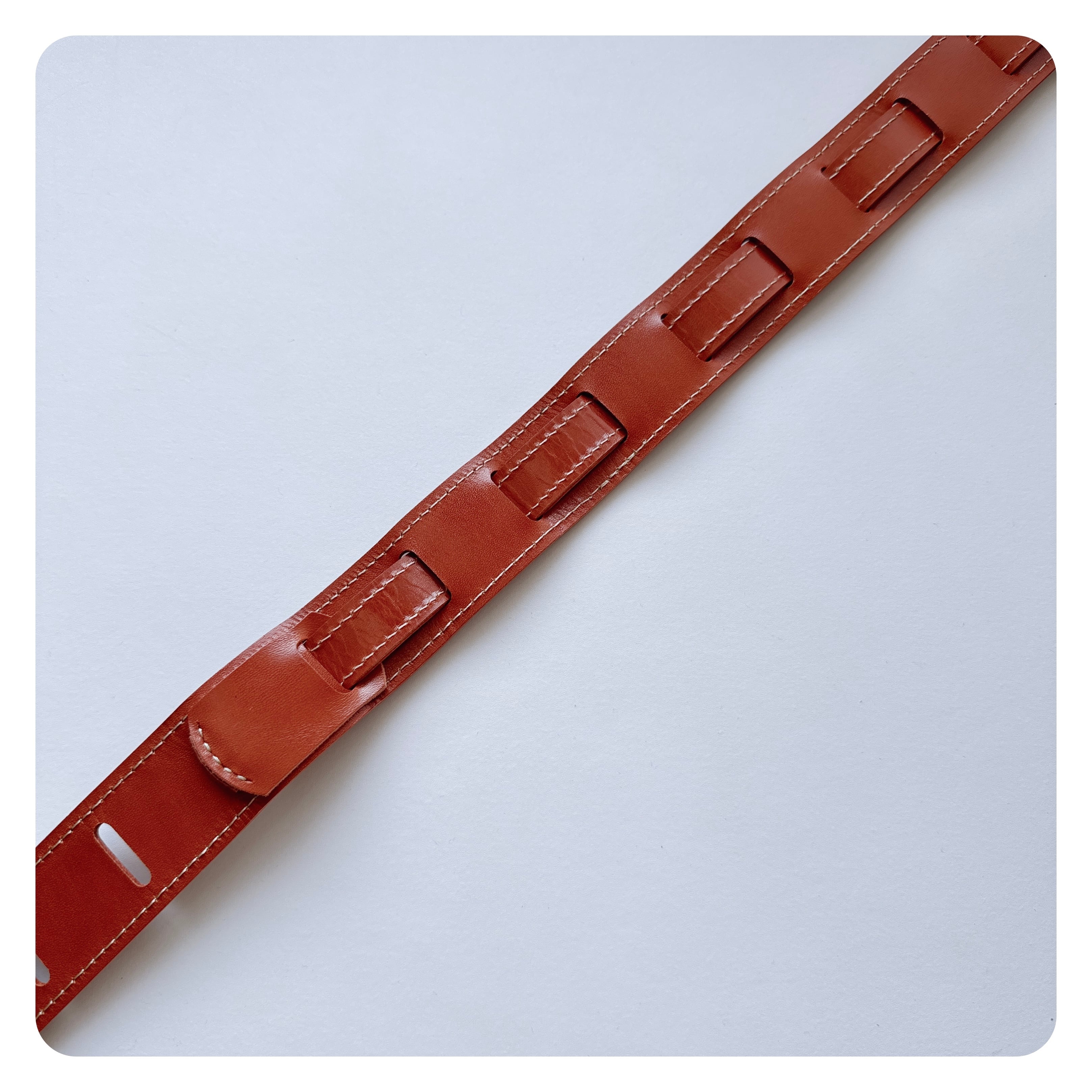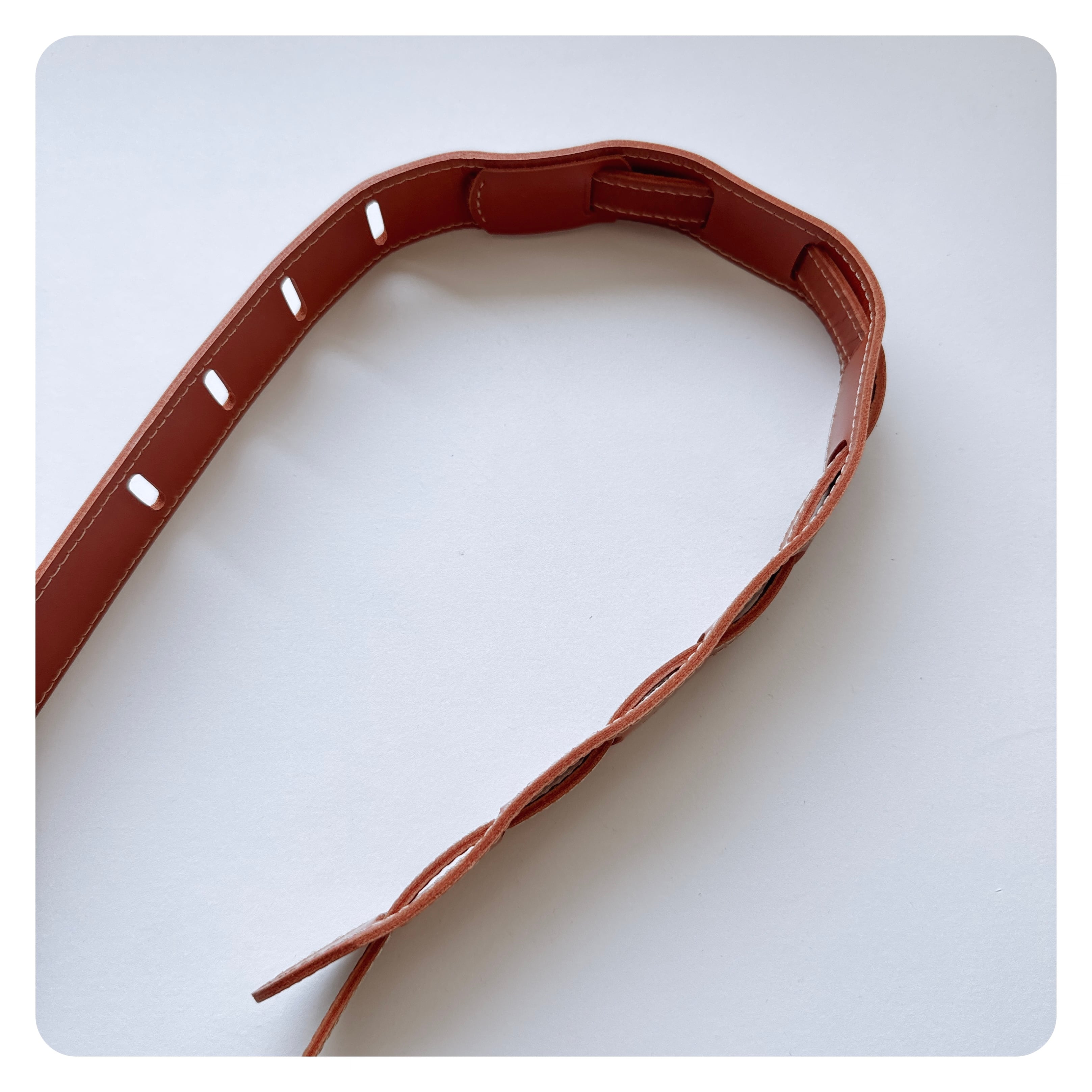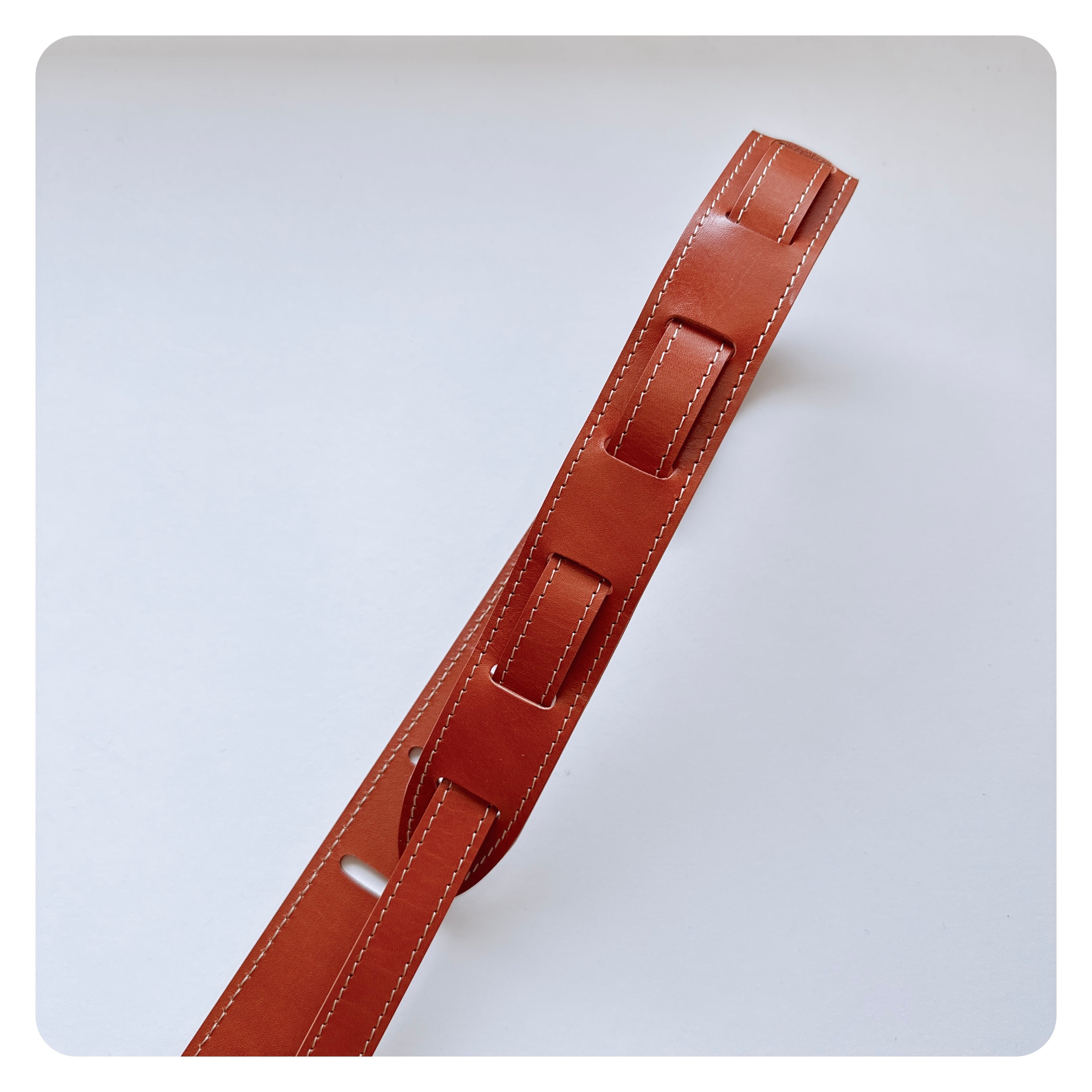 タンニンなめしの牛ヌメ革、オレンジブラウン色です。