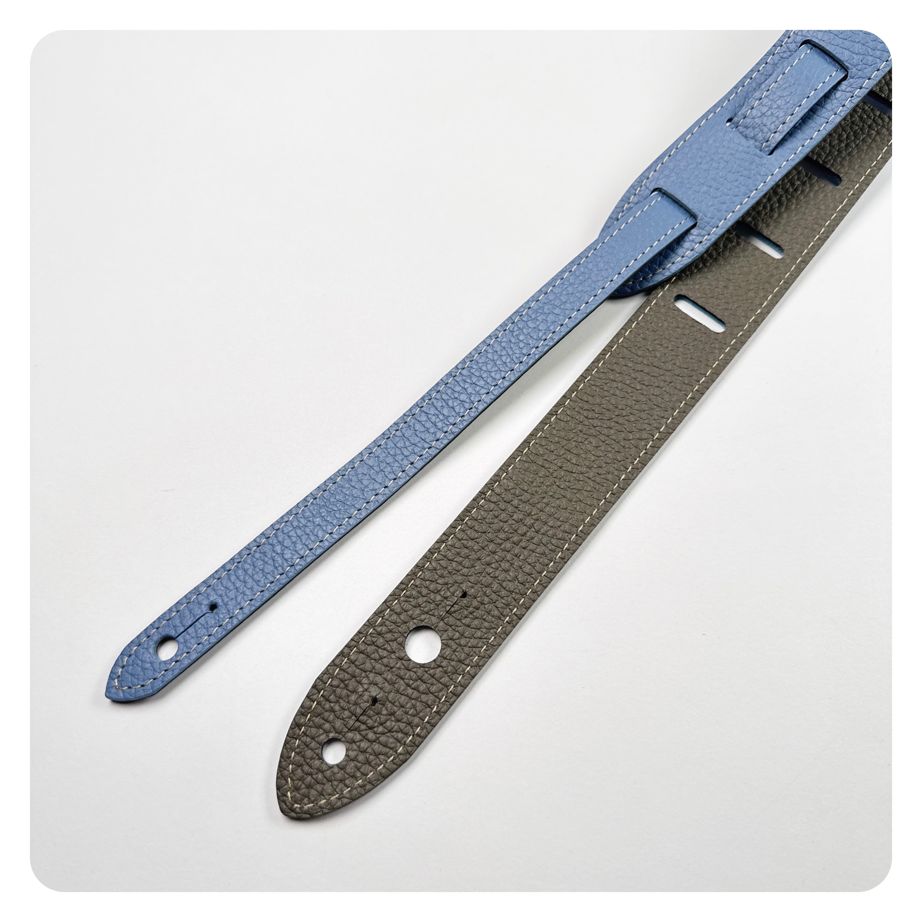 本革ウクレレストラップ[しぼグレイッシュブルー×しぼグレー]