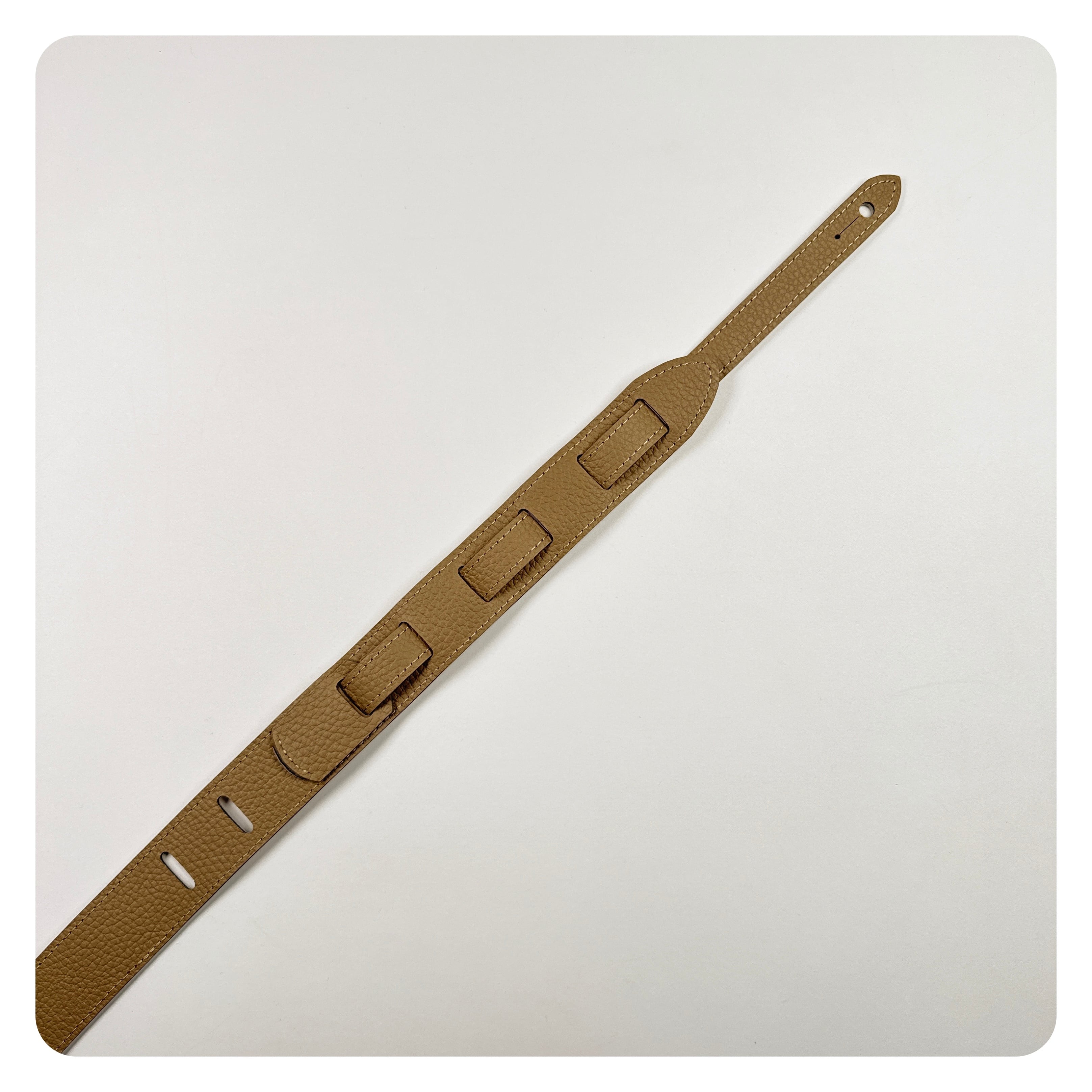 前から見える部分は1枚革、ボディ側で長さ調節していただきます。