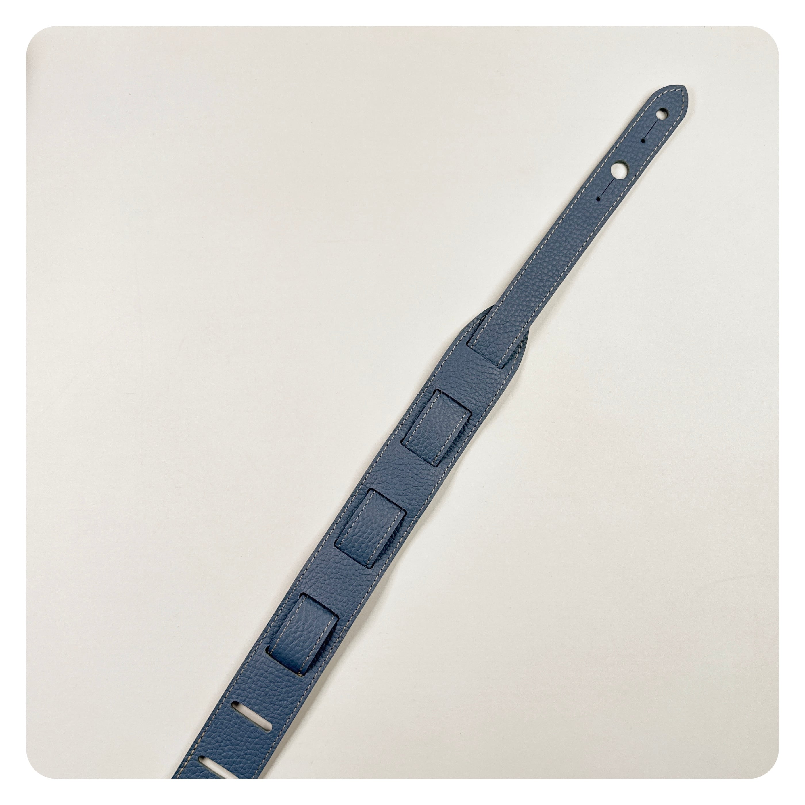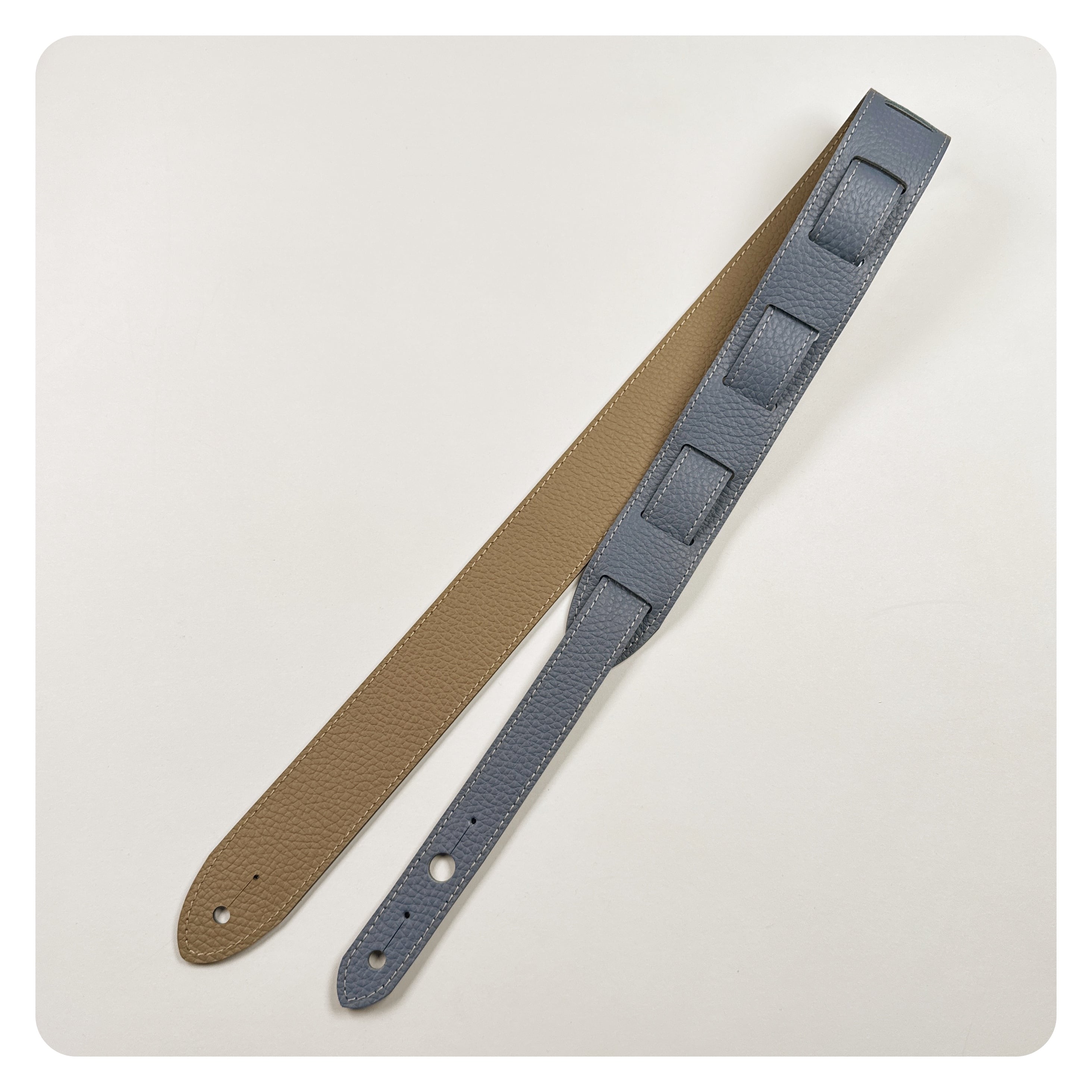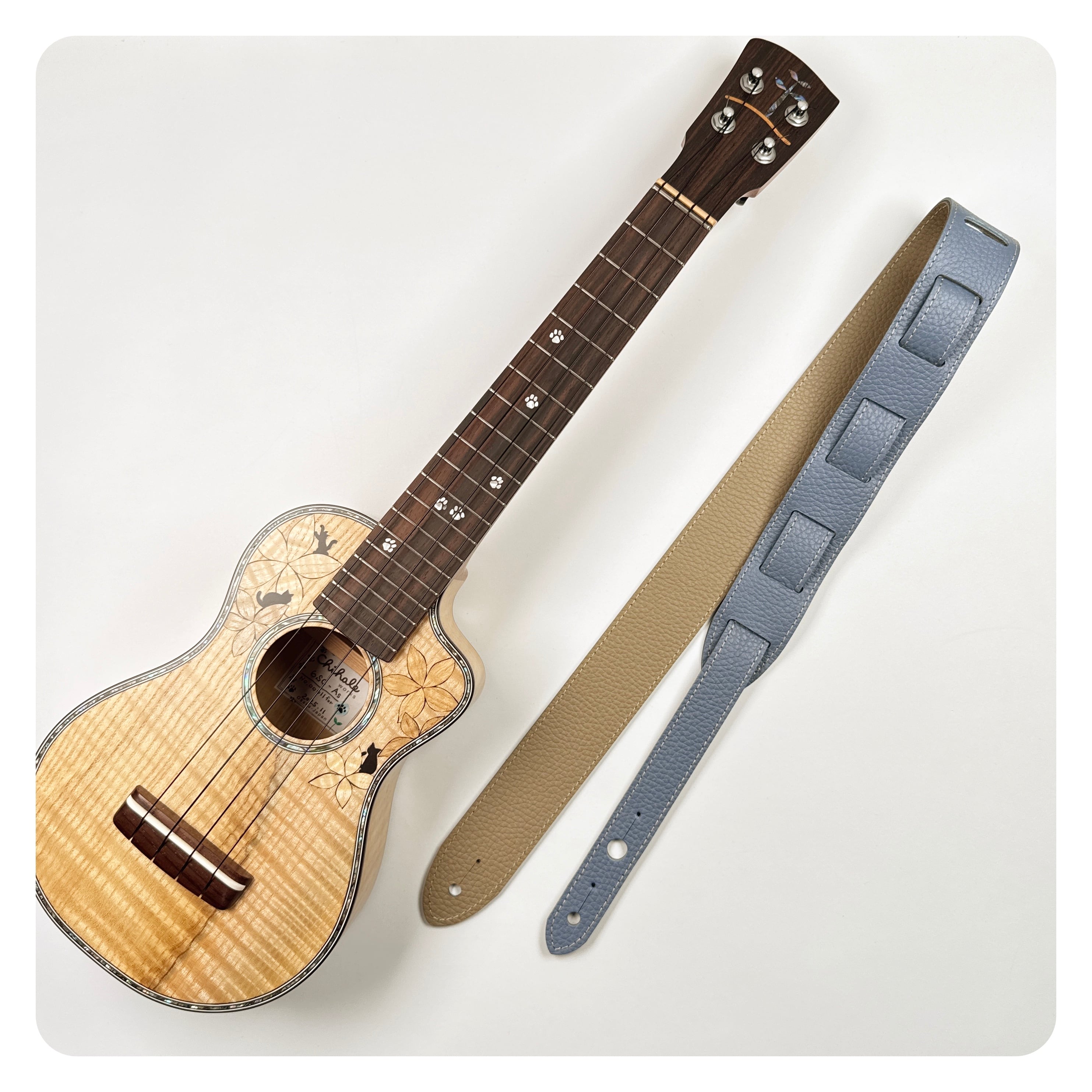 本革ウクレレストラップ新4.0cm幅[しぼグレイッシュブルー×しぼトープ]