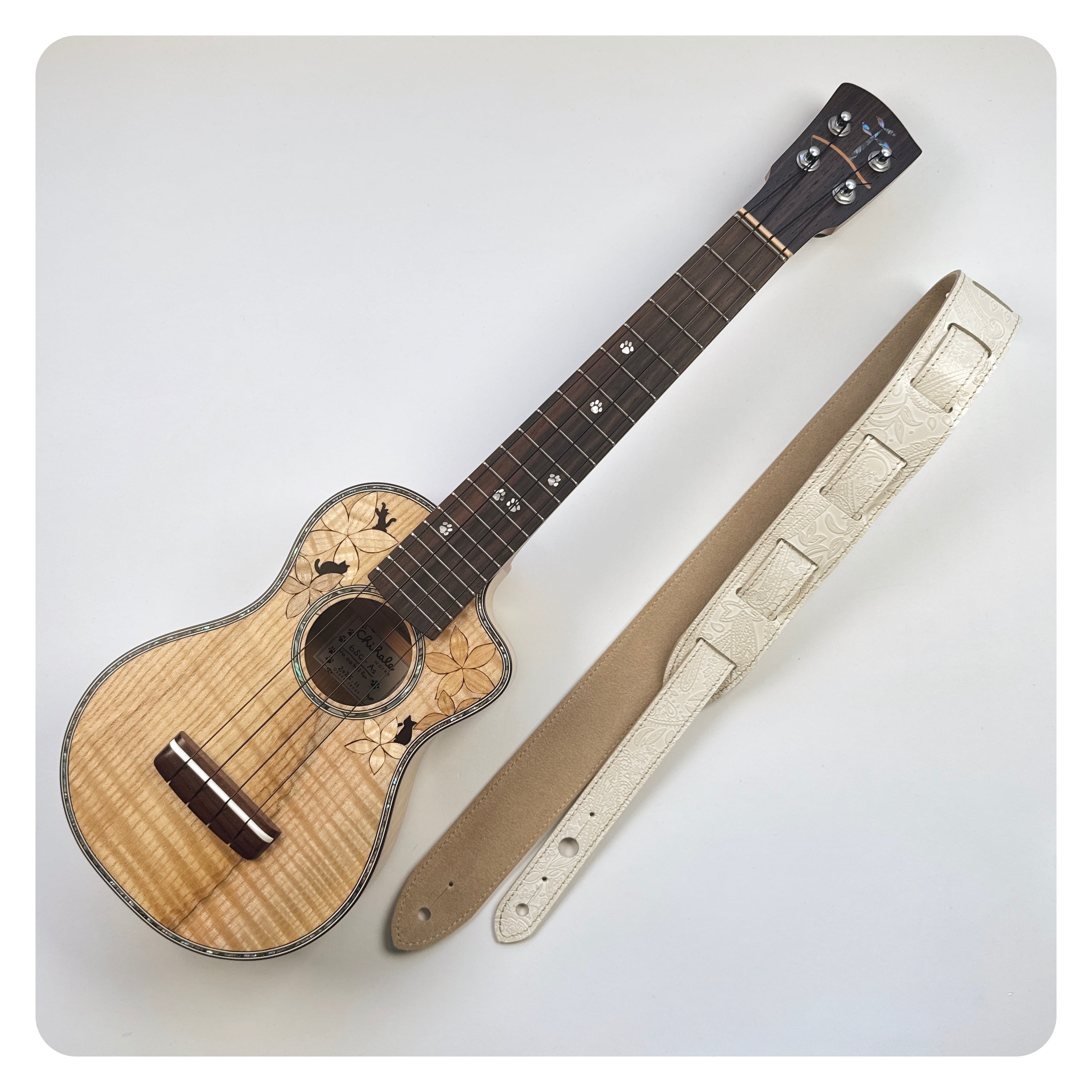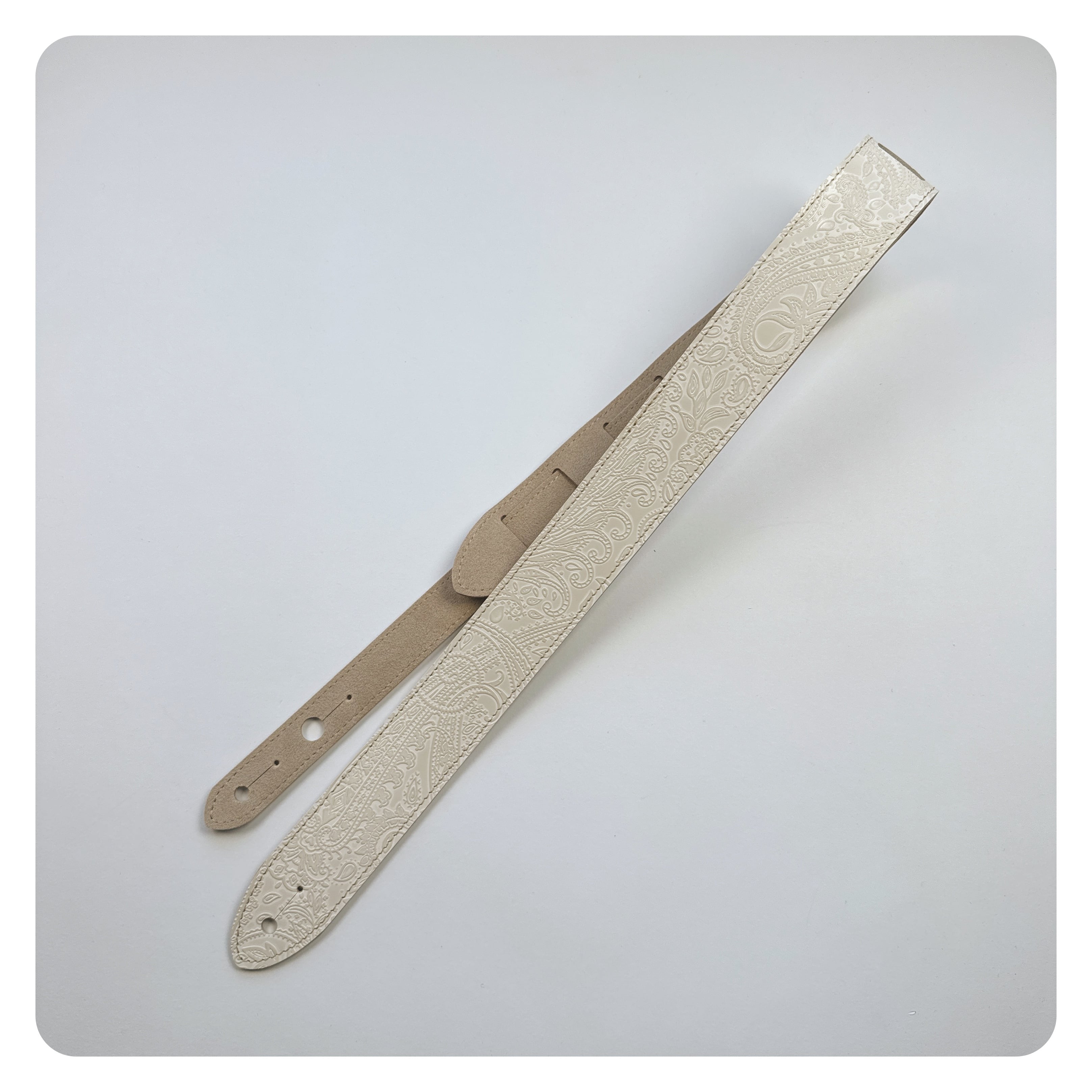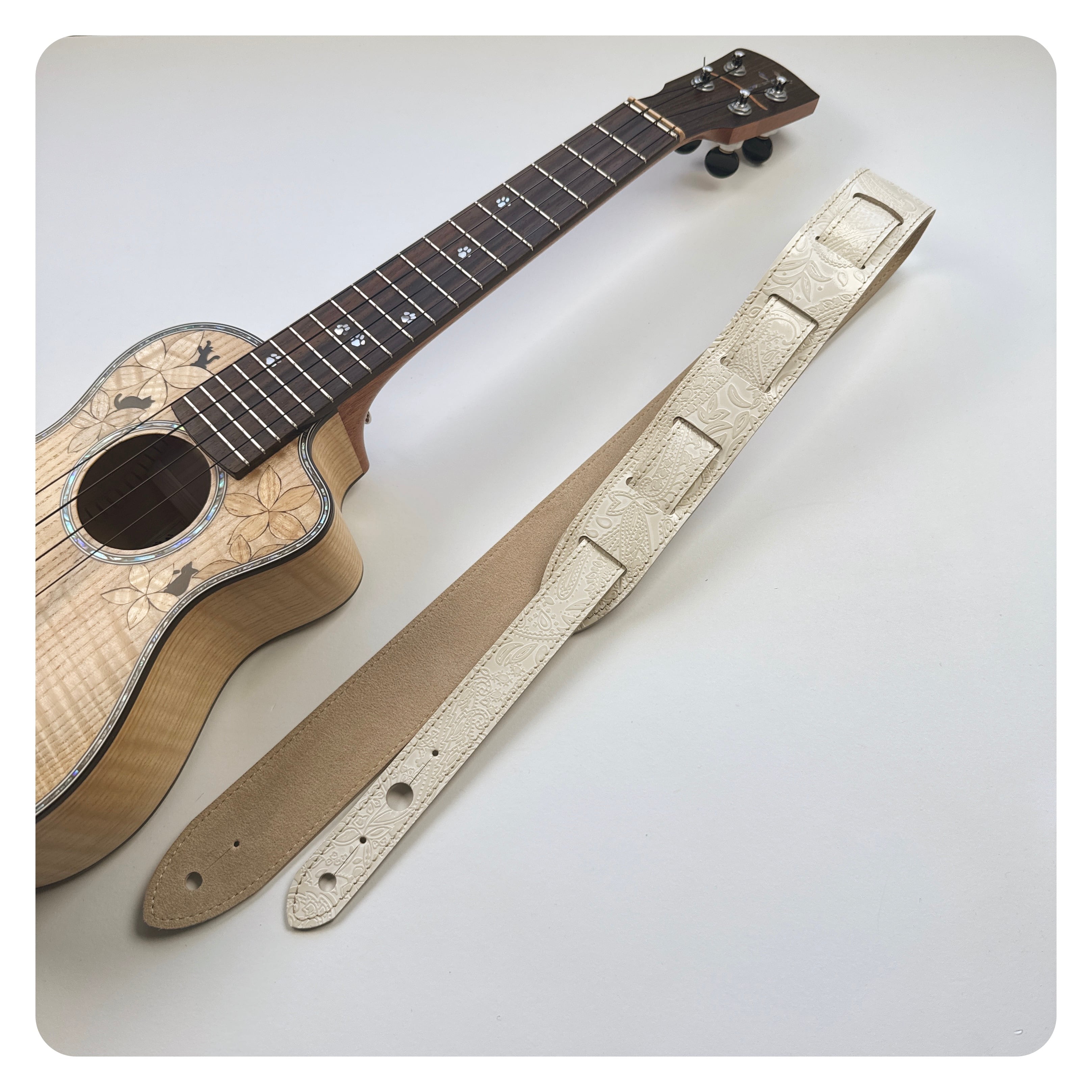 本革ウクレレストラップ【新4cm幅】[ペイズリーWH×ベージュスエード]