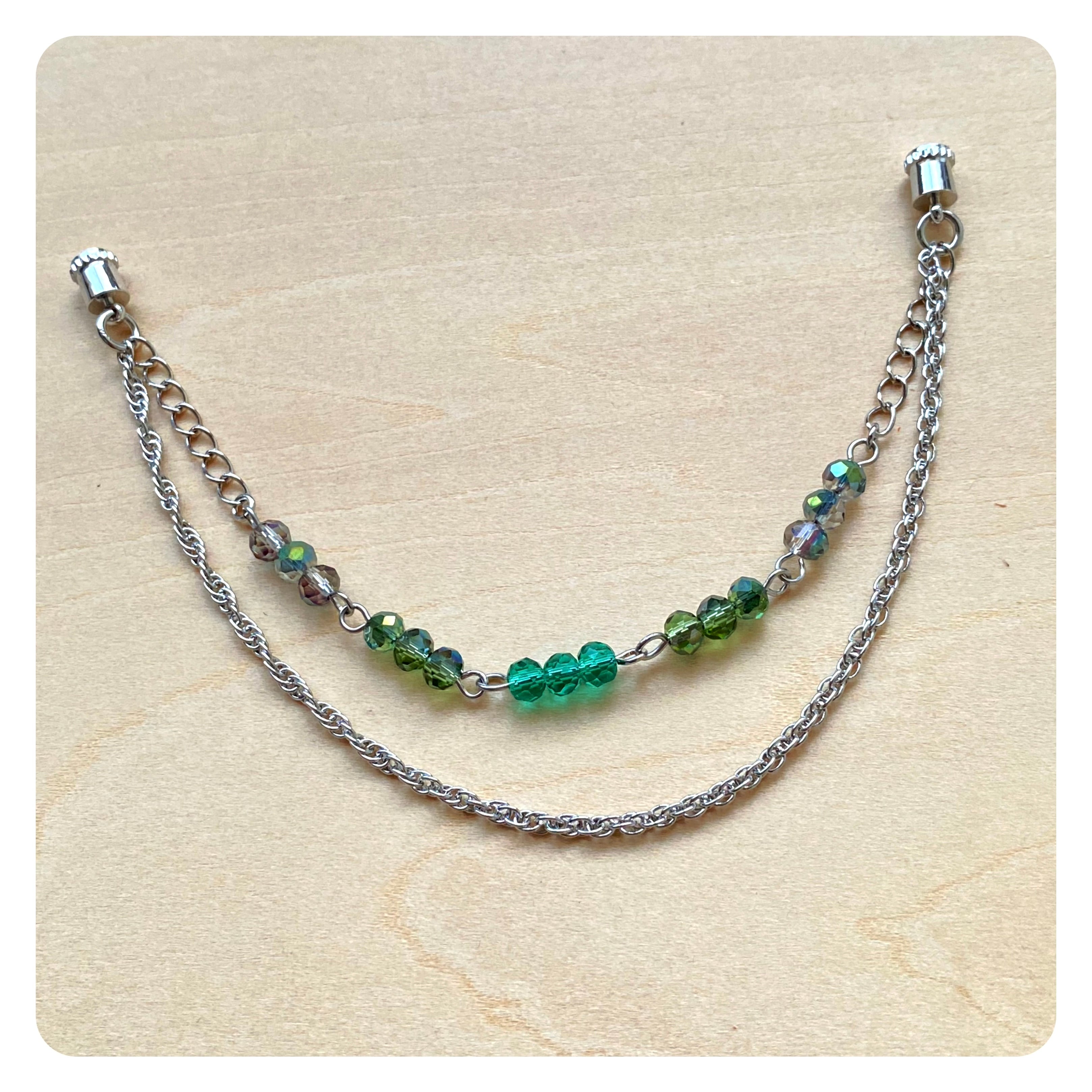 カリンバのトレモロチェーン[ボタン型ガラスビーズ緑系]