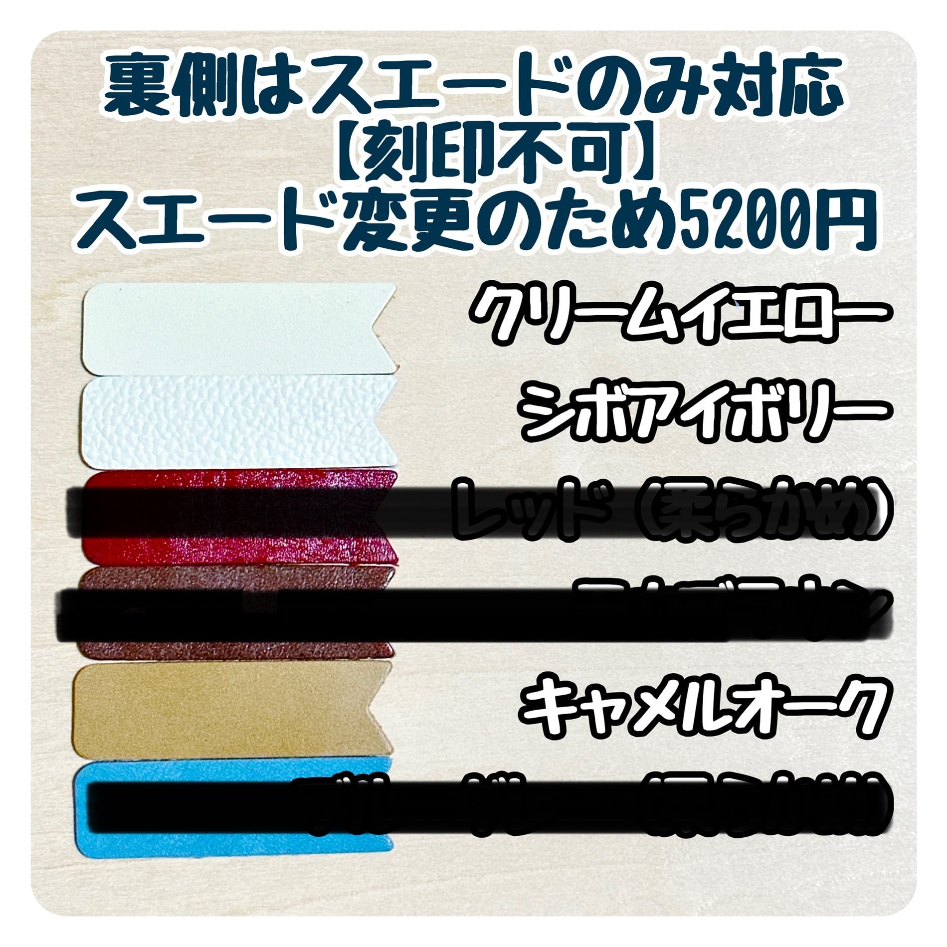 お名前刻印できる革には、+400円でお入れします。(お名前刻印できる革は少ないです)