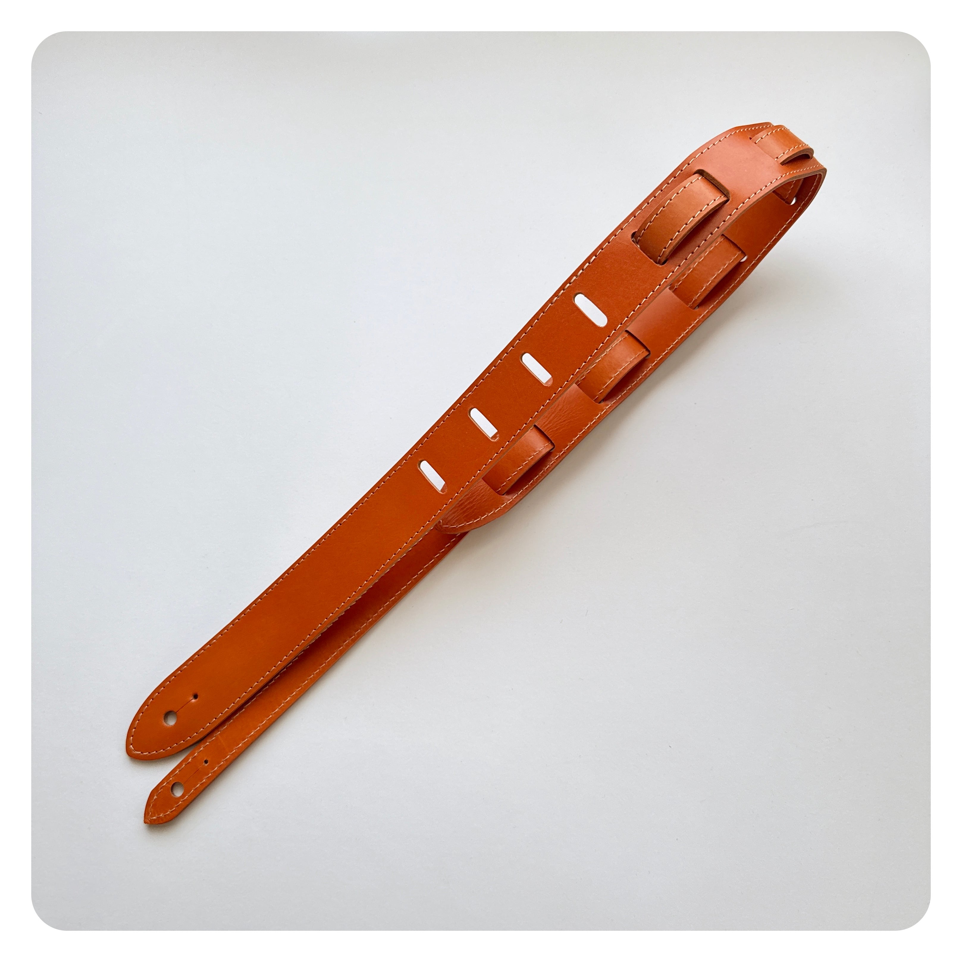 タンニンなめしの牛ヌメ革、オレンジキャメル色です。