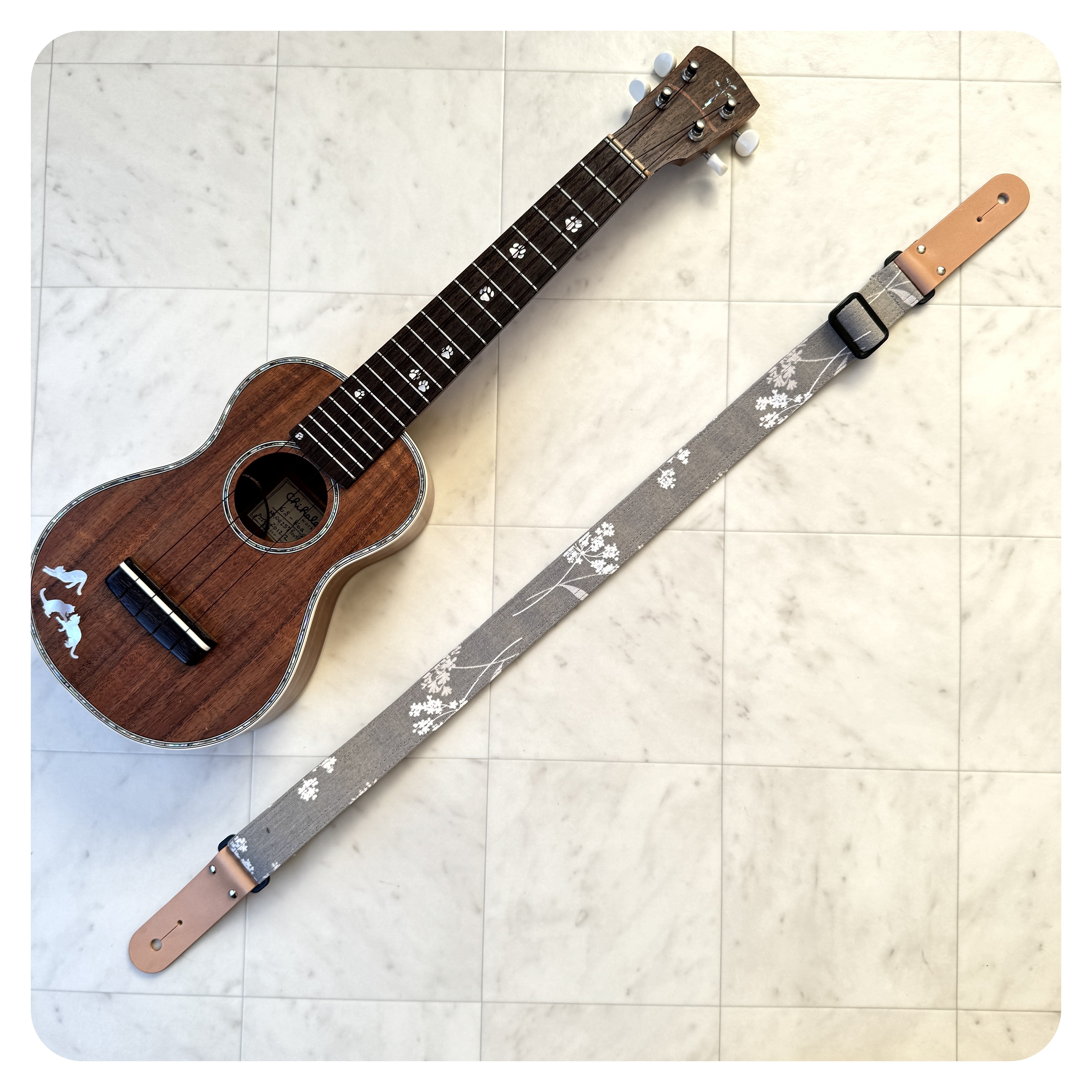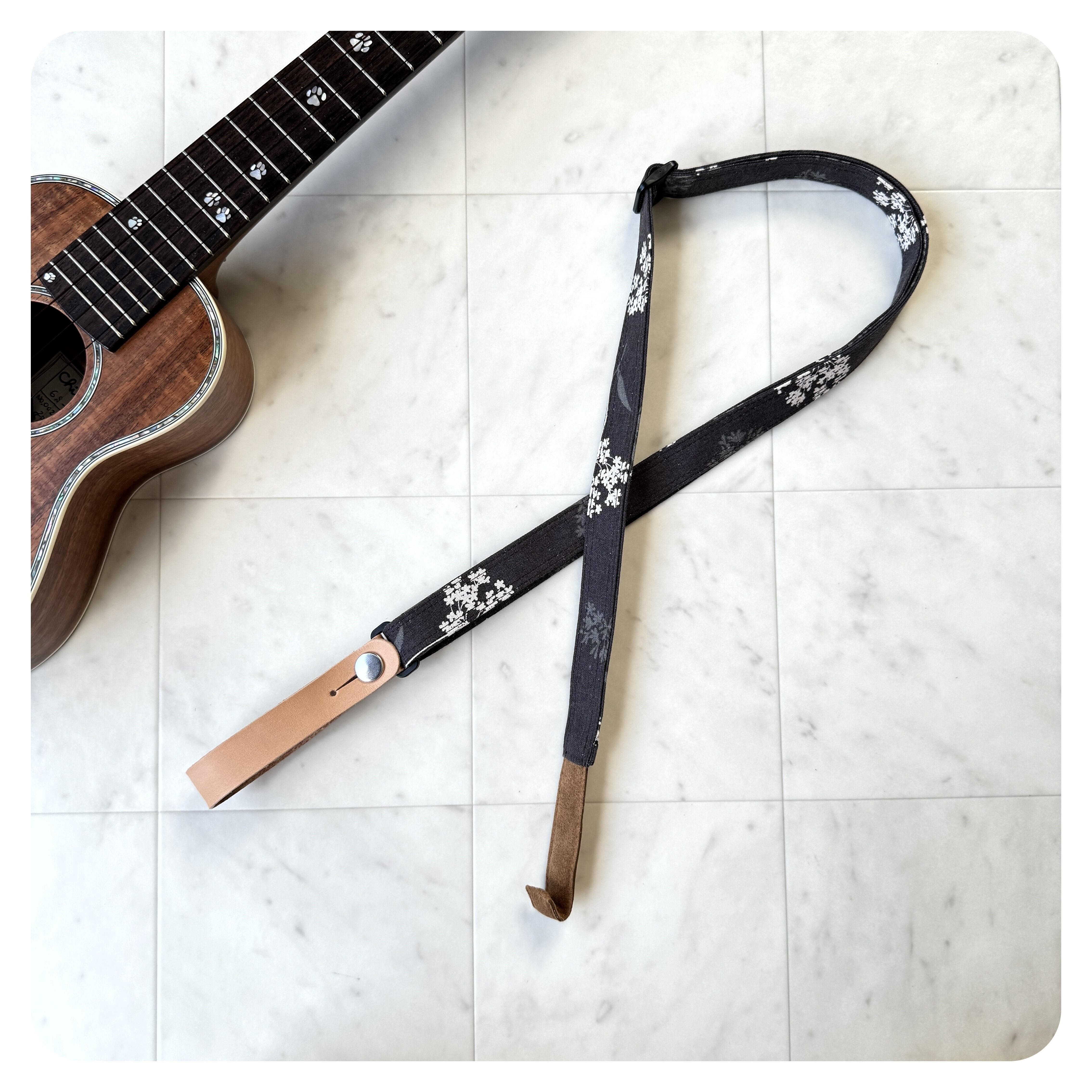 ウクレレストラップ[ナチュラルフラワー]モカ 【首の凝らないフック式・アジャスター付/ピン式】