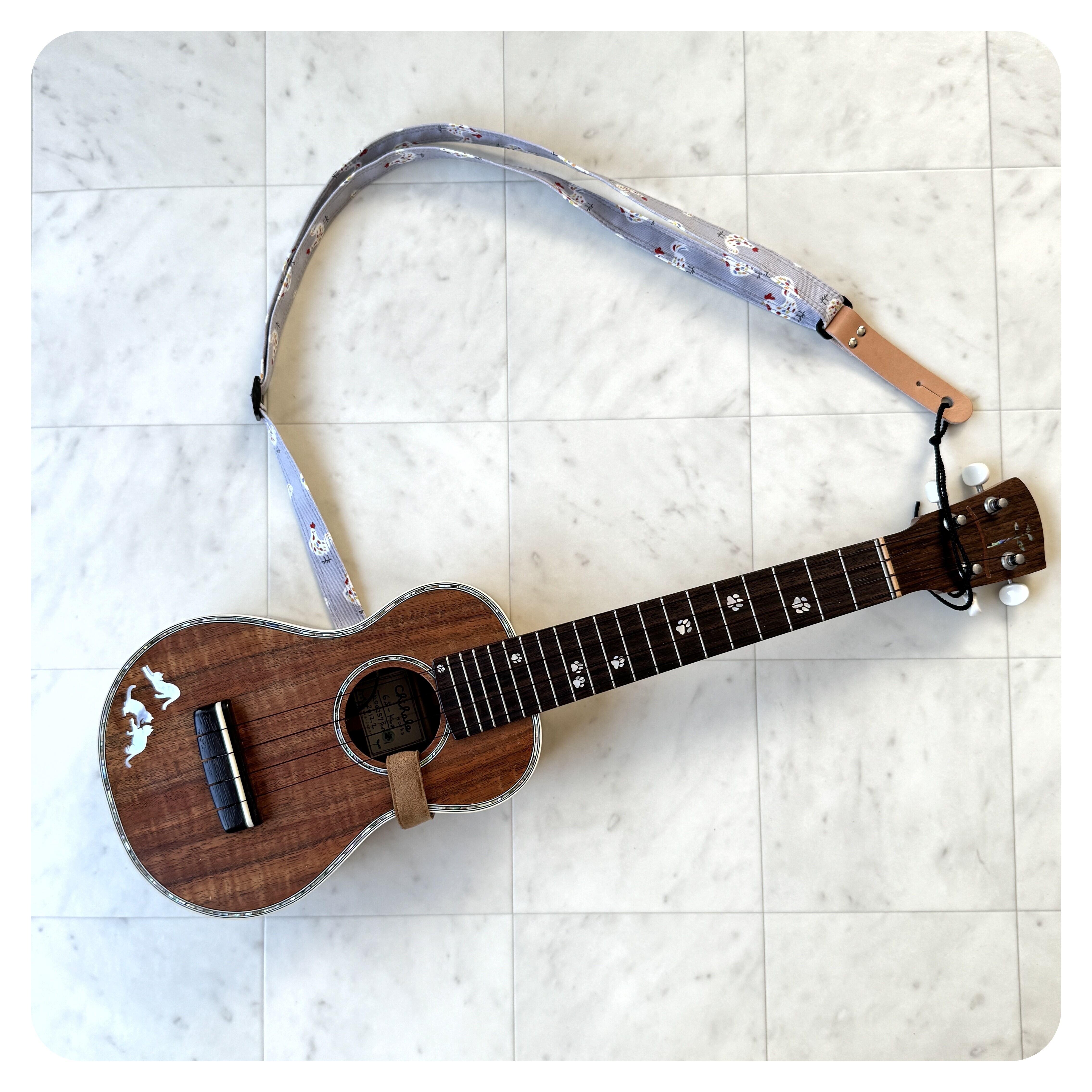 ウクレレストラップ[ニワトリ]グレー 【首の凝らないフック式・アジャスター付/ピン式】