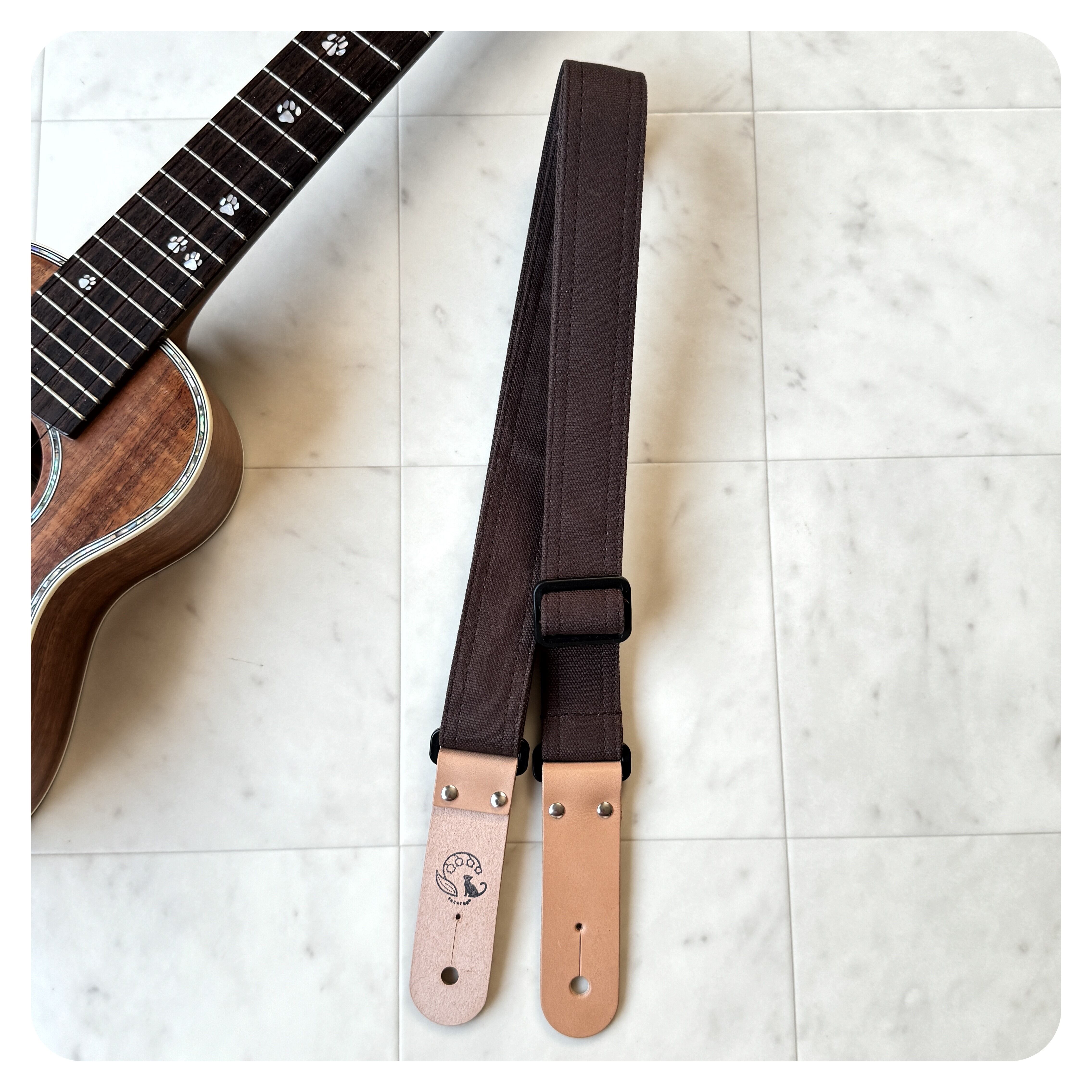 ウクレレストラップ[無地]ブラウン 【首の凝らないフック式・アジャスター付/ピン式】