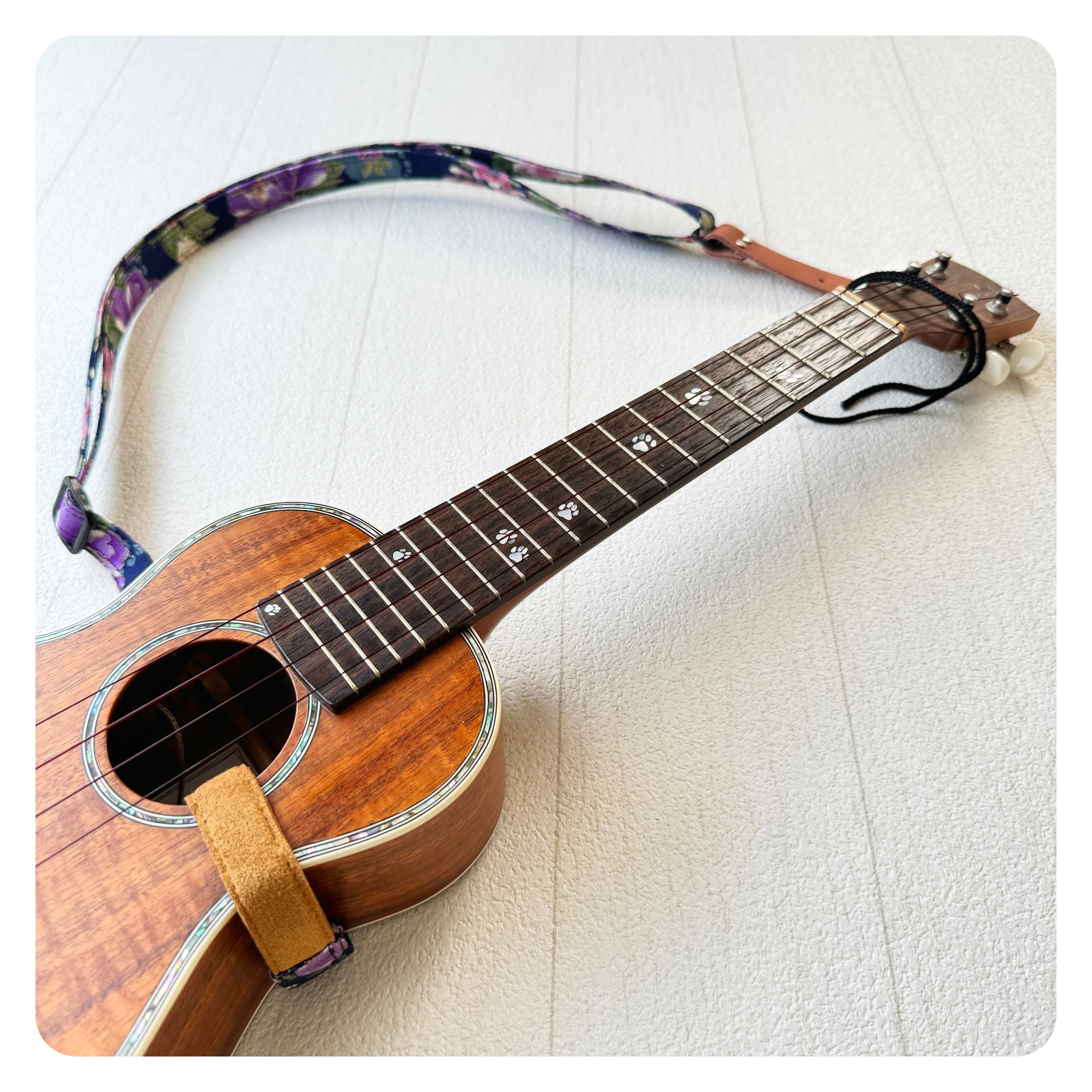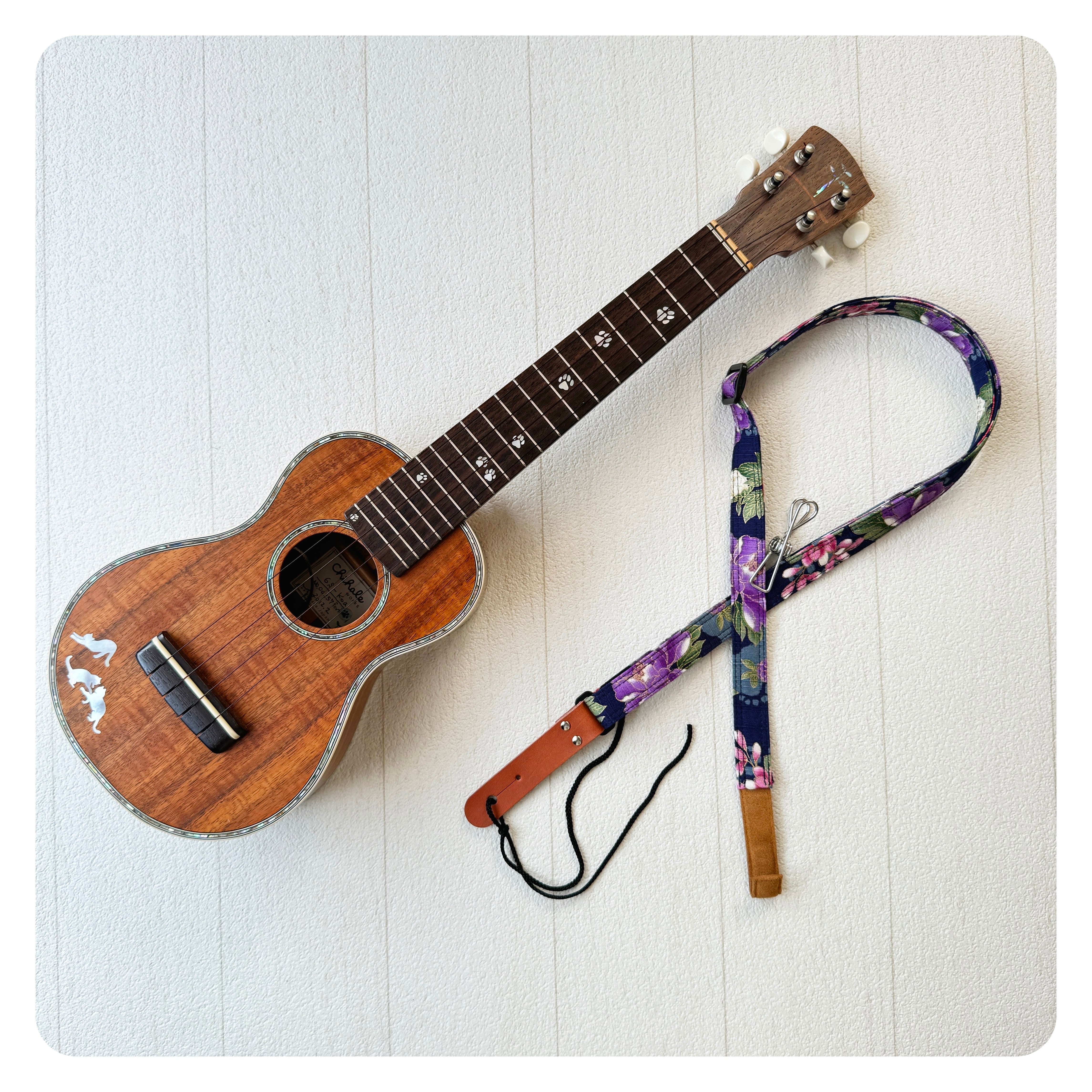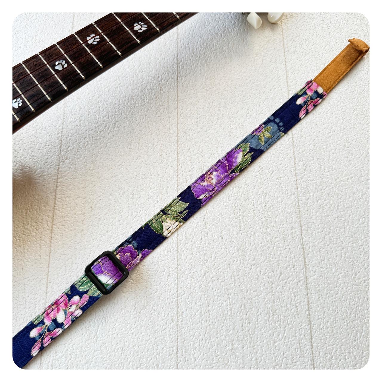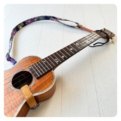 新フック式ウクレレストラップ[和牡丹]青系 【首の凝らないフック式・アジャスター付】