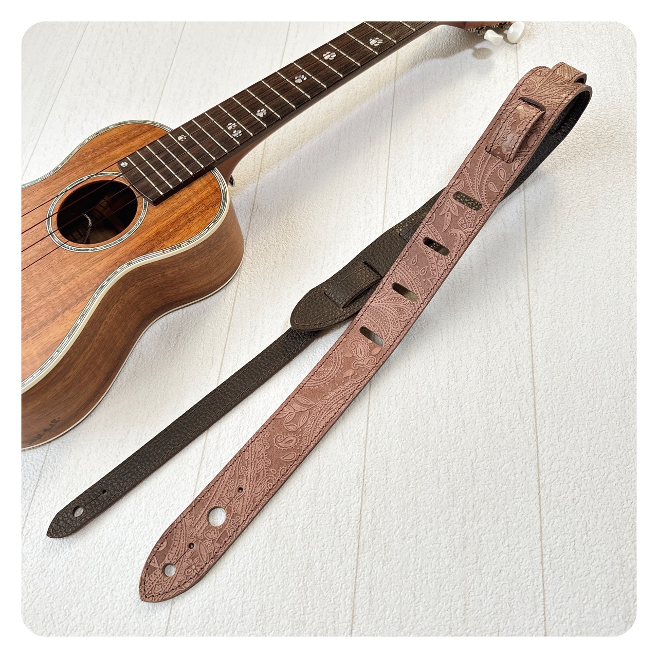 本革ウクレレストラップ[ペイズリーブラウン×しぼチョコブラウン]